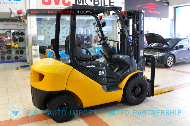 ขนาดยก 2.5 ตัน (นำเข้าจากญี่ปุ่นแท้ 100%) เสาสามท่อนยกได้สูงสุด 4.5 เมตร (FULL-FREE) SIDE-SHIFT งาเลื่อนซ้าย-ขวา งายาว 1,070 มม. เกียร์ AUTO 3 CONTROL ล้อยางตันใหม่ 4 เส้น |